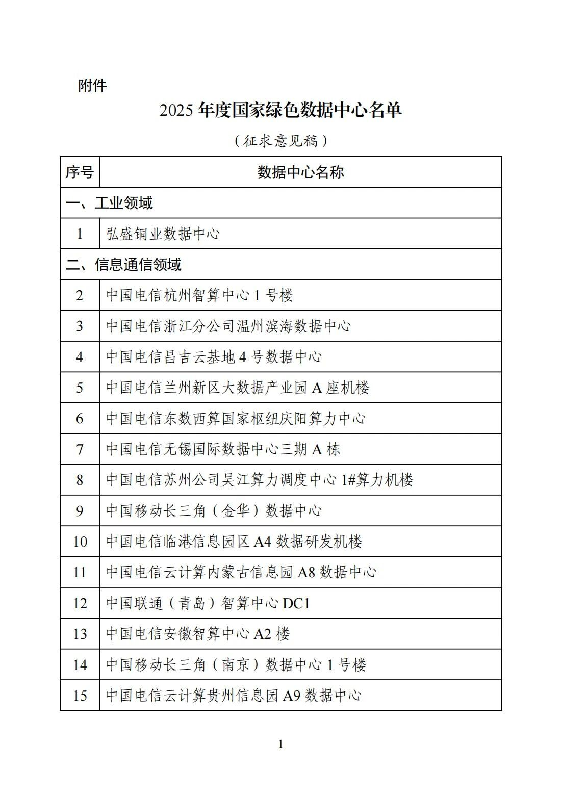 • 工信部:2025年度國家綠色數(shù)據(jù)中心名單公示